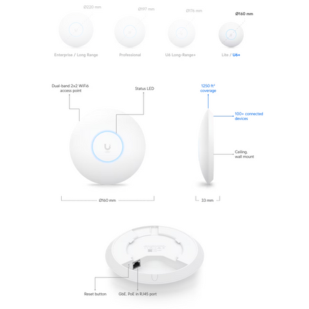 The Ubiquiti U6+ Access Point [U6+-US] is a compact access point improving upon the U6 Lite by bringing higher performance and dual-band WiFi6 support. Ideal for small and medium-sized businesses.